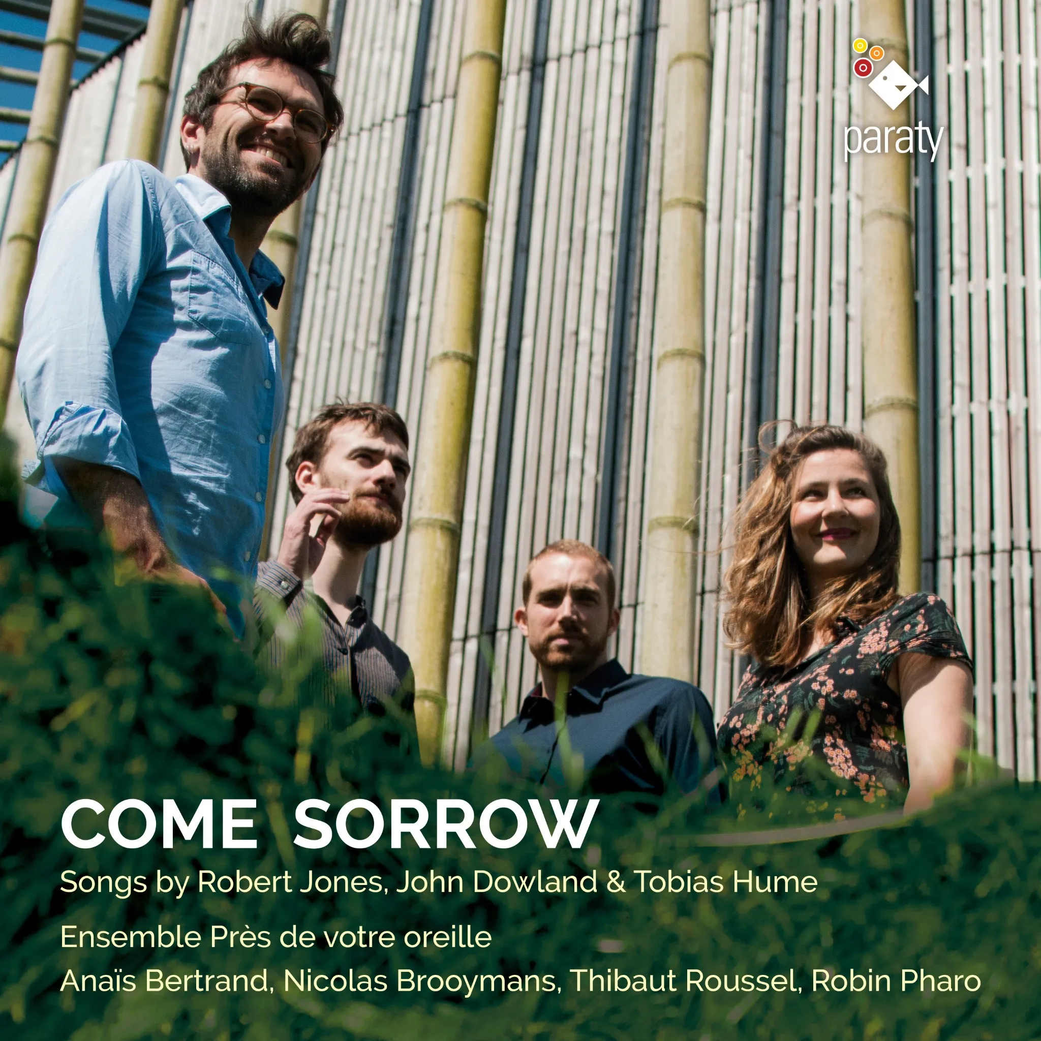 Come Sorrow, Robert Jones, John Dowland, Tobias Hume, Alfonso Ferrabosco II, songs anglais Renaissance, musique élisabéthaine, lute songs, lyra viol, viole de gambe, luth renaissance, musique vocale ancienne, Ensemble Près de votre oreille, Anaïs Bertrand, Nicolas Brooymans, Thibaut Roussel, Robin Pharo, First Tuning, musique anglaise XVIIe siècle, Paraty Productions