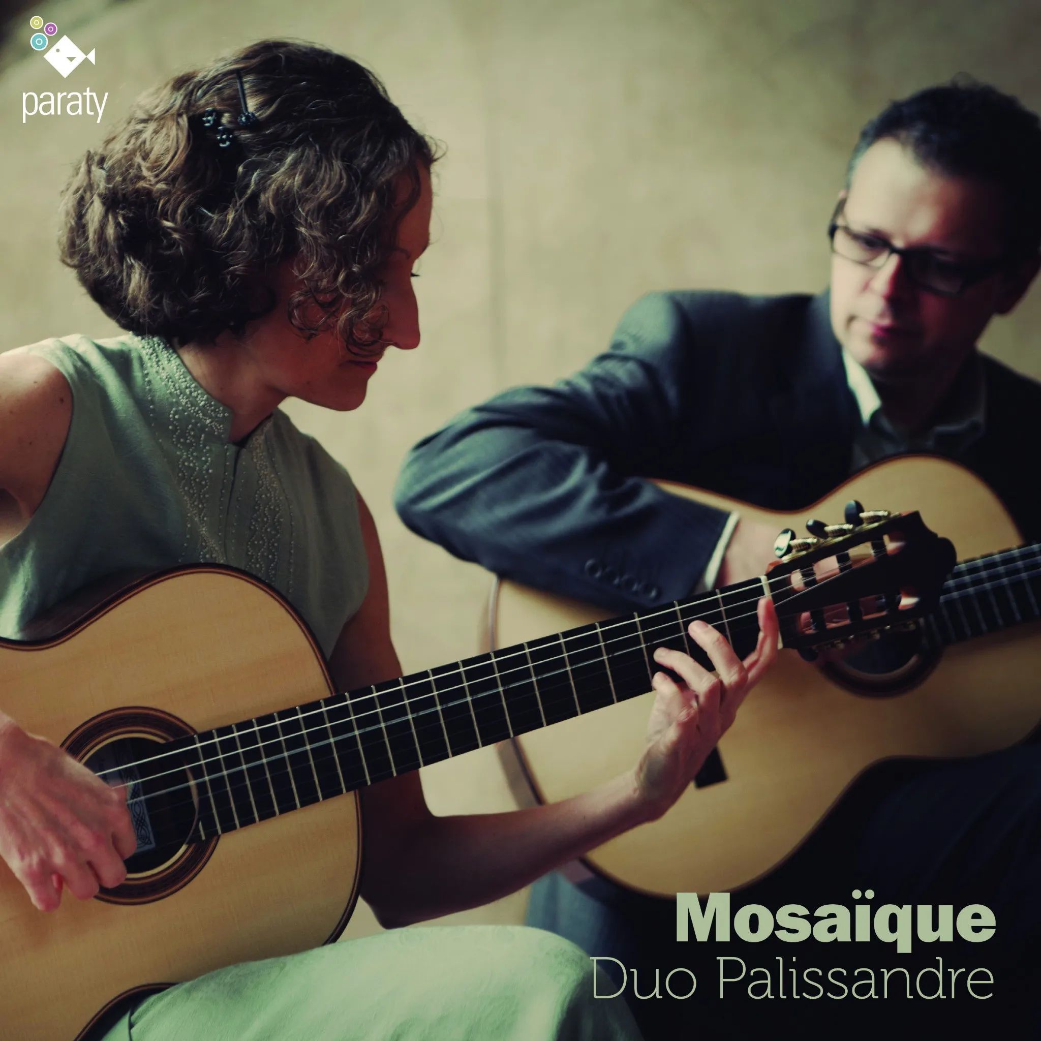 Mosaïque, Duo Palissandre, deux guitares, guitare classique, musique française, Antoine de Lhoyer, Jean-Philippe Rameau, Gabriel Fauré, Claude Debussy, Pierre Petit, Duo concertant op.31, Suite Dolly, Suite bergamasque, Clair de lune, Toccata, arrangements pour deux guitares, musique de chambre, répertoire français XVIIIe siècle, répertoire français XIXe siècle, répertoire français XXe siècle, Vanessa Dartier, Yann Dufresne, Paraty Productions